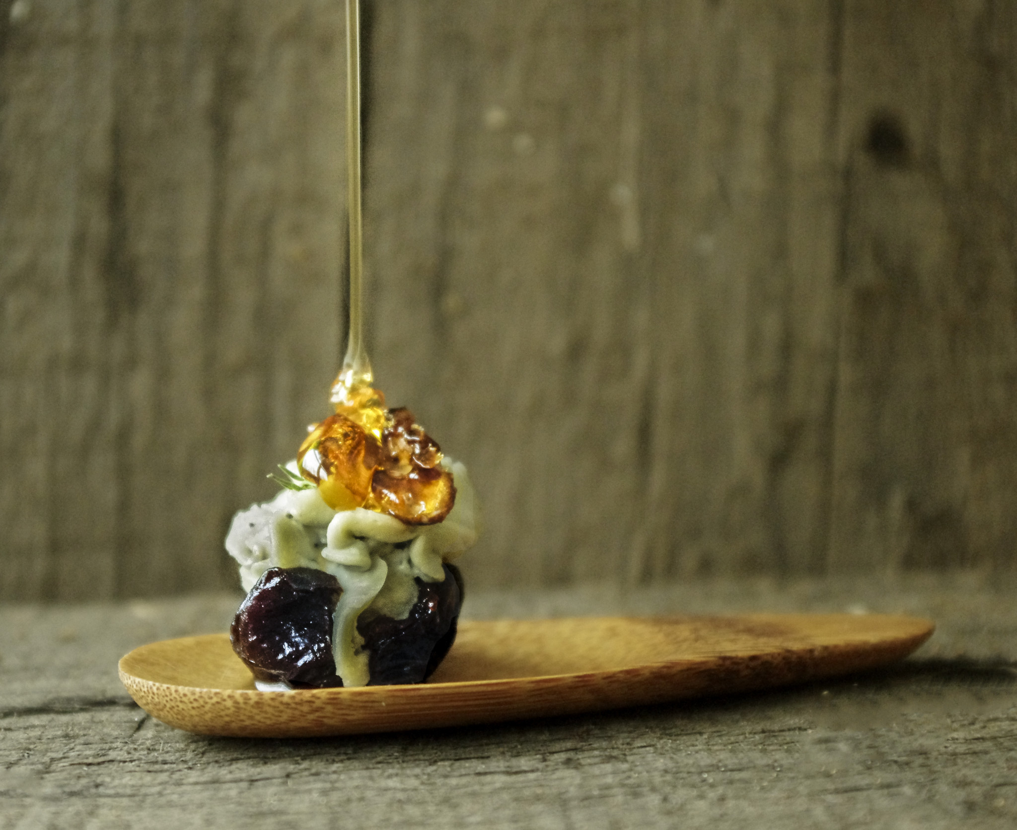 Džiovintos slyvos užkandis - subtilus, švelnus ir lengvas vieno kąsnio užkandis, kurį sudaro džiovinta slyva, karamelizuotas graikiškas riešutas bei pelėsinio sūrio kremas, gardintas medumi ir čiobreliu. Viename kąsnyje telpa skirtingi kraštai, skirtingos kultūros - nuo Graikijos slėnių iki žydinčių Lietuvos pievų, nuo pietietiškos aistros iki lietuviško svetingumo, tad tai skaniausių įspūdžių kupinas užkandis Jūsų šventėms! Vestuvių svečiai, beje, šį derina su putojančiu vynu - taip dar labiau atsiskleidžia subtilūs poskoniai.